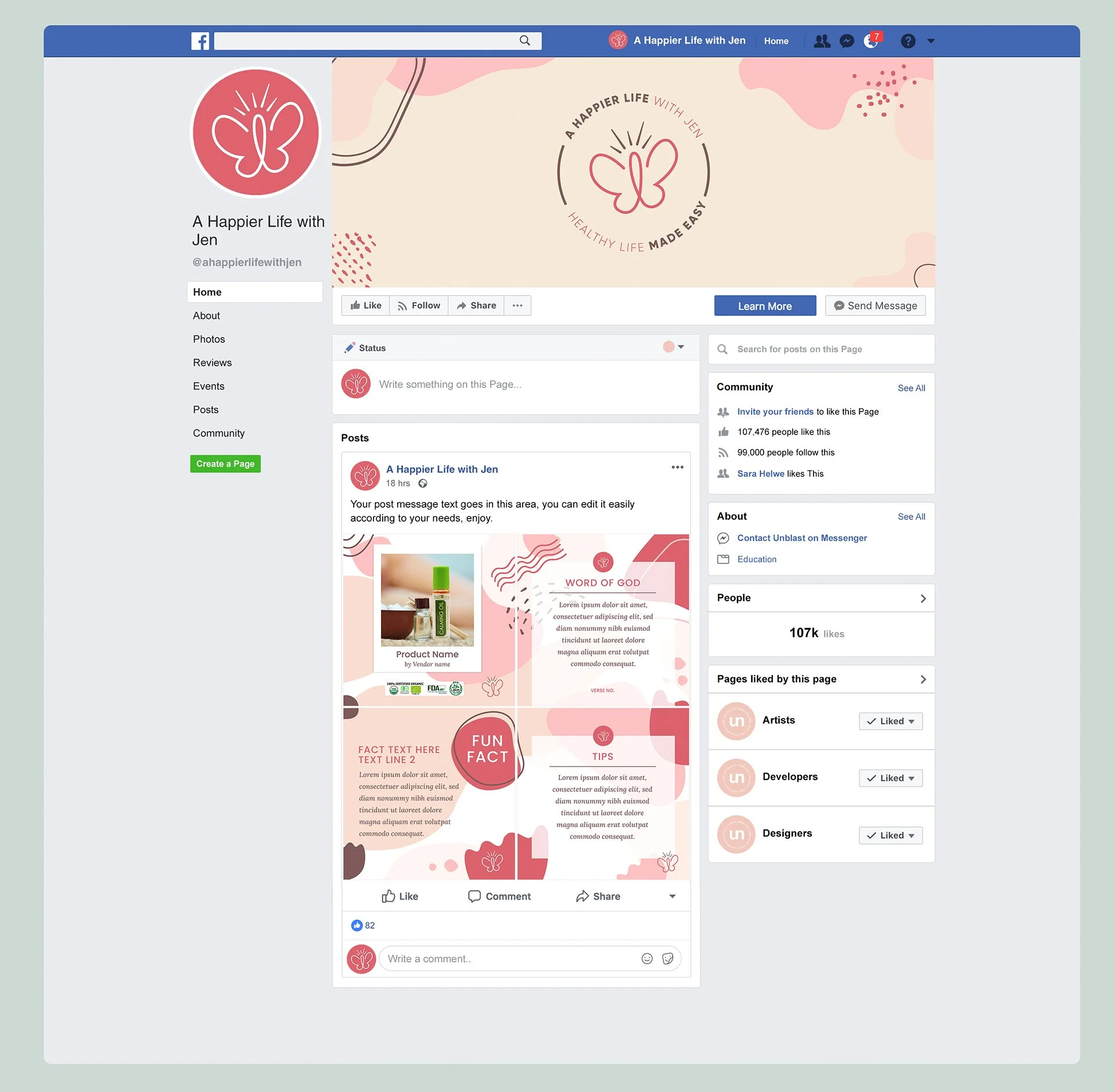 A Happier Life with Jen is a wellness brand rooted in personal resilience and purpose. I developed a visual identity system — including the logo, packaging design, and social media assets — that reflects the brand’s mission to support a better, healthier, stronger, and happier life. The result is a calm, uplifting, and trustworthy brand presence that speaks to individuals on a healing or health-conscious journey.